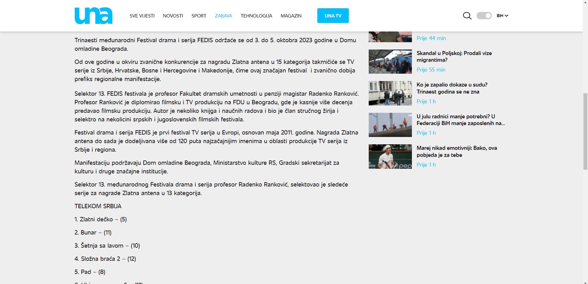 Selektovane serije Fedis 2025. godine