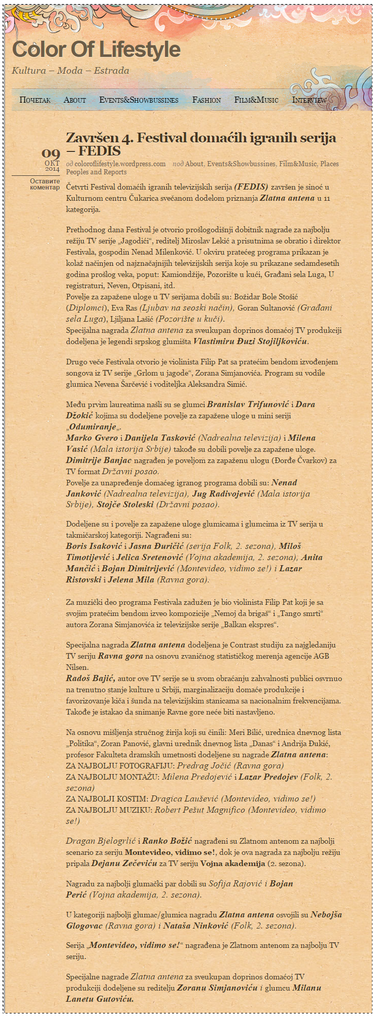 Selektovane serije Fedis 2025. godine
