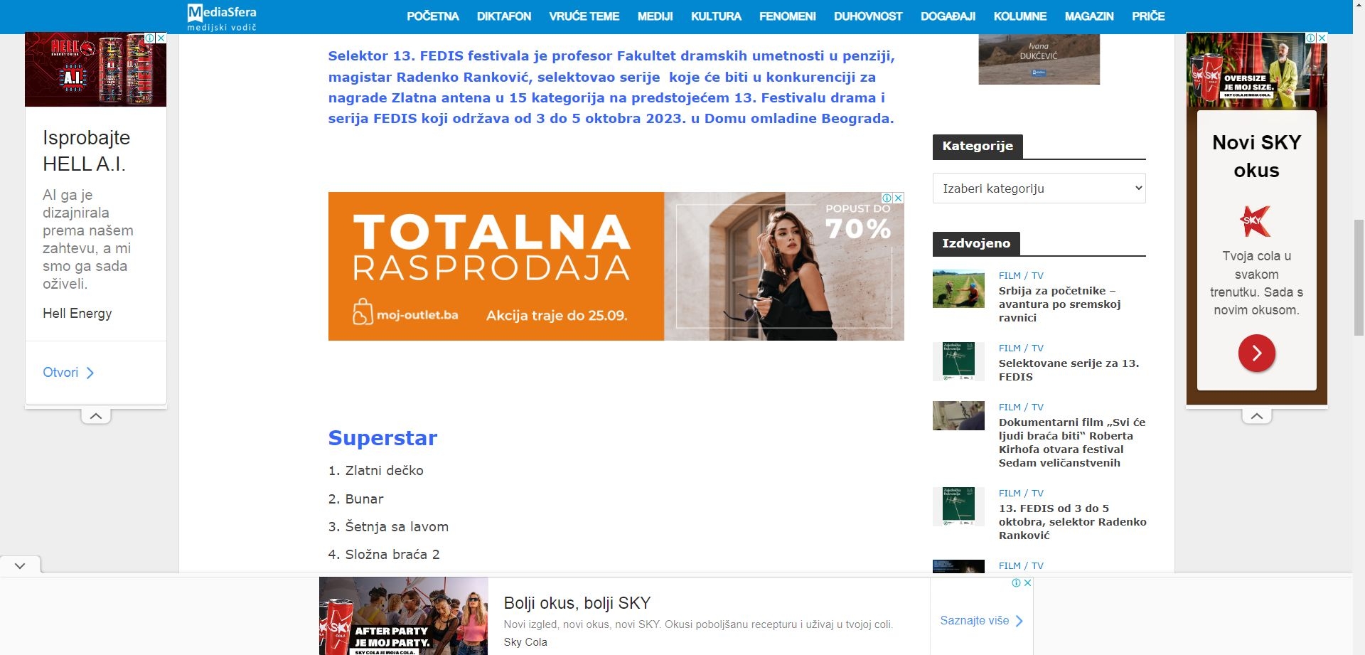 Selektovane serije Fedis 2025. godine